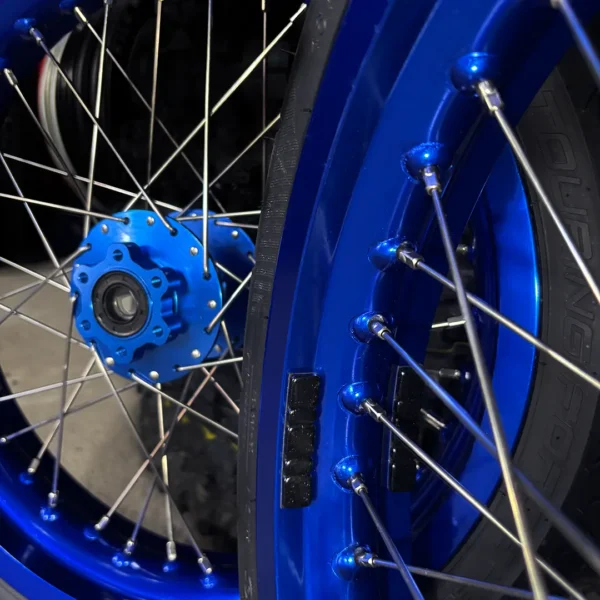 Sold worldwide and test-proven by thousands of customers on six continents – the best quality/price wheels on the market. Upgraded, reinforced rims stained with anodizing process give them more scratch and corrosion-resistant surface than standard paint. Super strong upgraded stainless steel spokes and double-size brass nipples (stronger and more corrosion resistant than aluminum type) lanced with a 3-cross spoke pattern make Milk Racing wheels strong enough to withstand more than what Sur-Ron bike can stand. Our main goal is to give alternative wheel upgrade options for expensive competitors’ products and give the best product experience possible, providing as much hardware as possible to make it hassle-free for you to focus on riding rather than figuring out how to put an upgrade in.