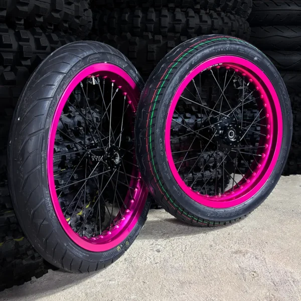 Front 16×2.15″/2.50″ + Rear 16×2.15/2.50/3.00″ Supermoto set benefit:
