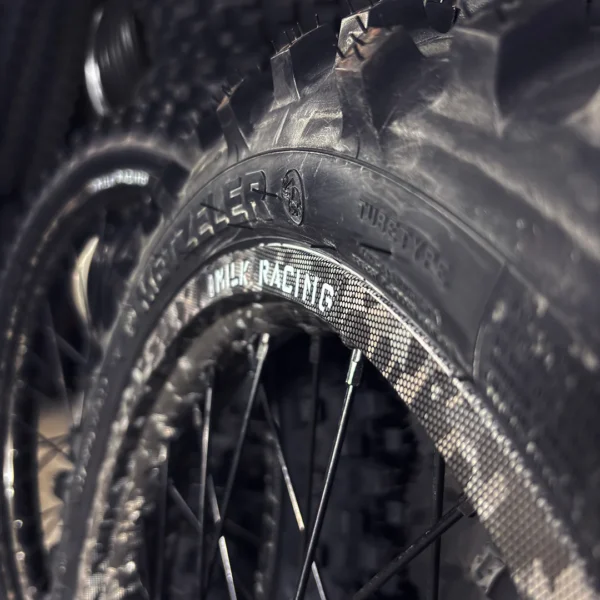 Sold worldwide and test-proven by thousands of customers on six continents – the best quality/price wheels on the market. Upgraded, reinforced rims stained with anodizing process give them more scratch and corrosion-resistant surface than standard paint. Super strong upgraded stainless steel spokes and double-size brass nipples (more robust and more corrosion resistant than aluminum type) lanced with a 3-cross spoke pattern make Milk Racing wheels strong enough to withstand more than what Sur-Ron bike can stand. Our main goal is to give alternative wheel upgrade options for expensive competitors’ products and give the best product experience possible, providing as much hardware as possible to make it hassle-free for you to focus on riding rather than figuring out how to put an upgrade in. Wheels always come with tools, spare spokes, spoke wrench, inner tube, rim band, and rim lock – you only miss fitting a tire on. If you need 100% Plug&Play wheels, we offer tire fitting as a standard offer. Wheels come ready to ride straight from the box. A tubeless system can be fitted as well. As a direct producer, we provide customization such as color combinations, dishing, and others.